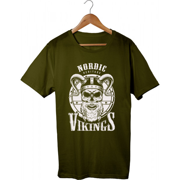Nordic Vikings Heritage T-shirt with a powerful Norse-inspired design. Ideal for Viking enthusiasts and mythology lovers.
